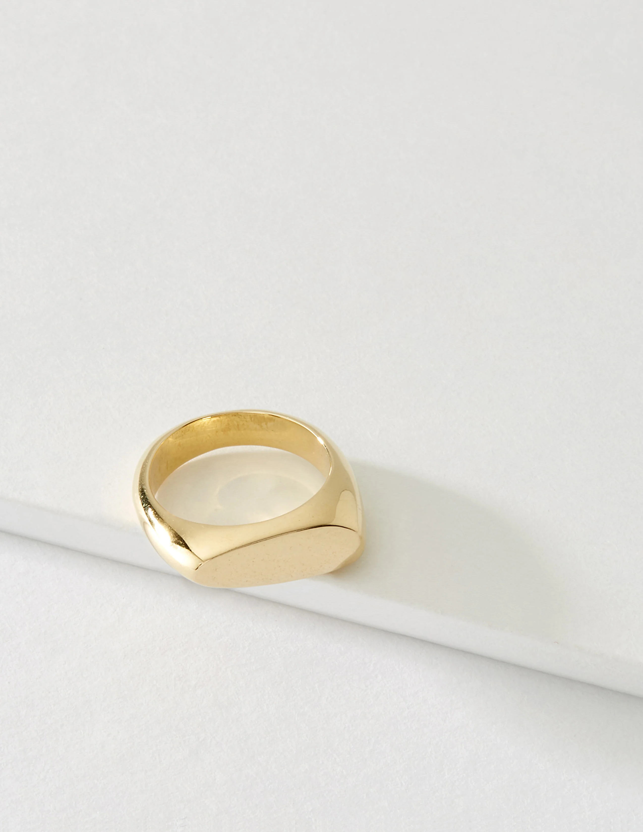 The signature Asymmetrical Signet RingĀ was intentionallyĀ madeĀ for those who are drawn toĀ classics, with an artful twist. ThisĀ sculptural yet sleek, hand-carvedĀ designĀ is a true standout when worn alone, or stacked with your other favourites.Ā