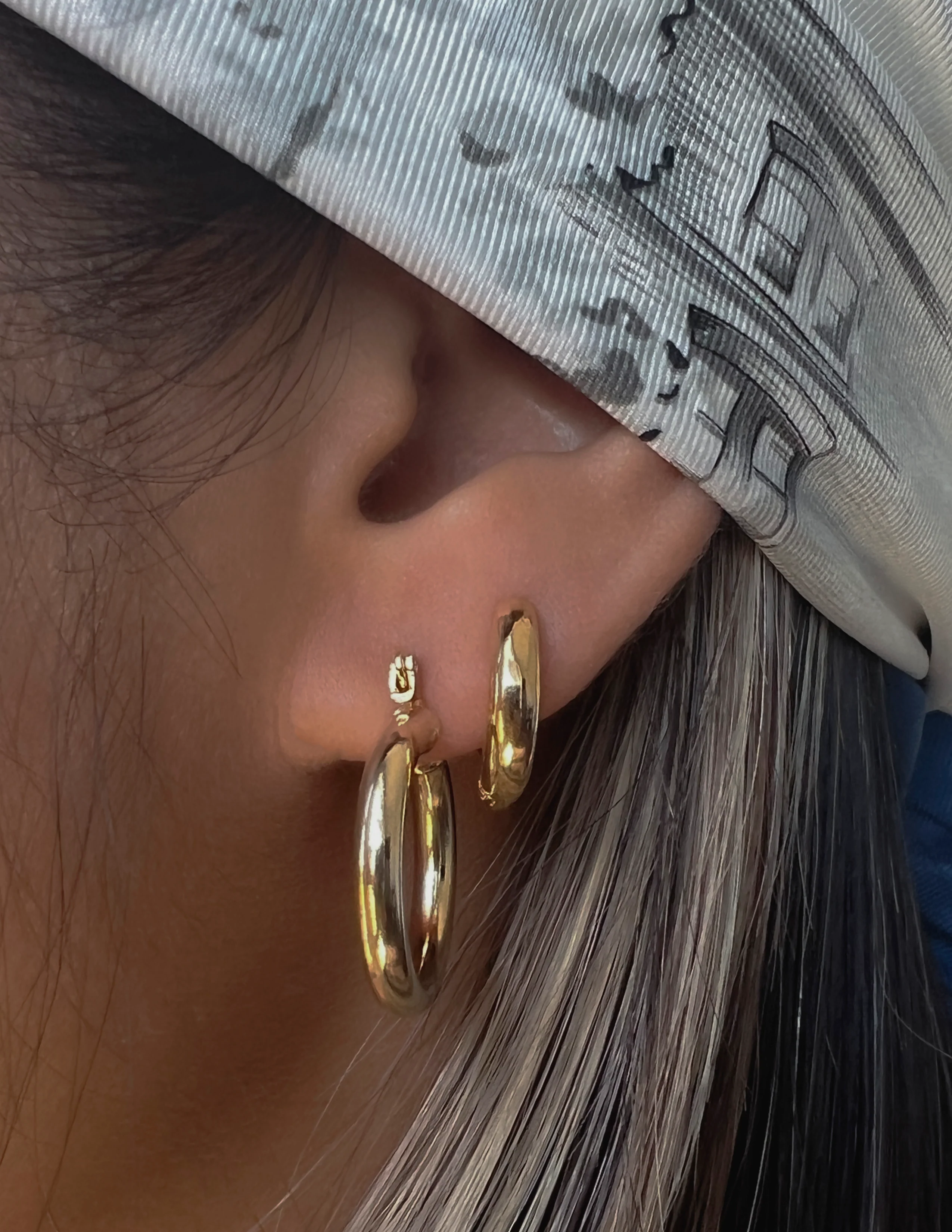 Your everyday stylish round hoops that are minimal yet eye-catching. They are lightweight, effortless and comfortable on the ears. A timeless style that elevates any look you wear them with, from casual to formal.