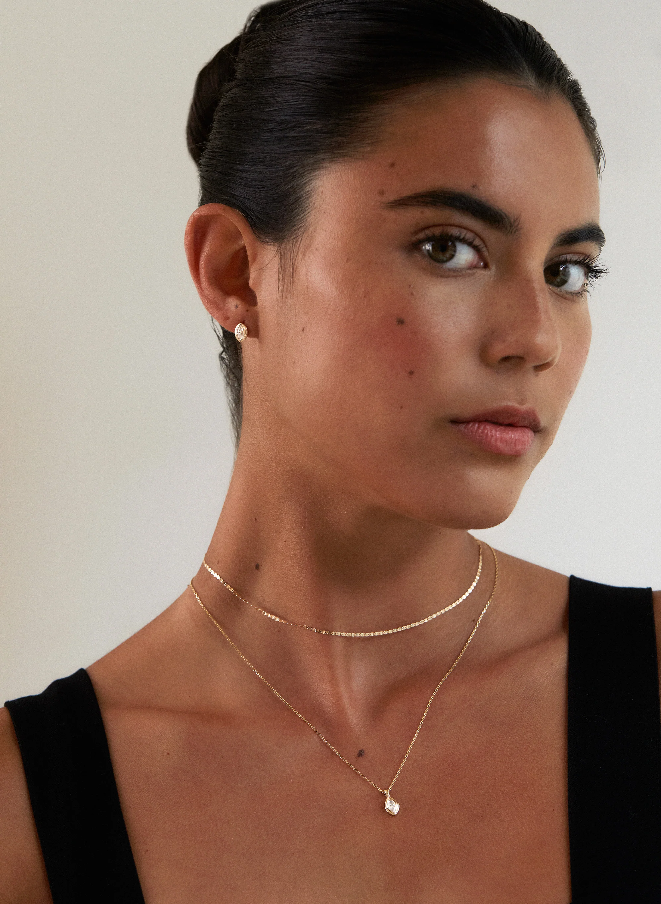 Cadette's signature Gaia Diamond Necklace is a modern heirloom that features a radiant marquise diamond within its core. This piece is a celebration of Mother Nature — expressed in the pendant's silhouette which alludes to a blooming form, as well as an awakened eye.