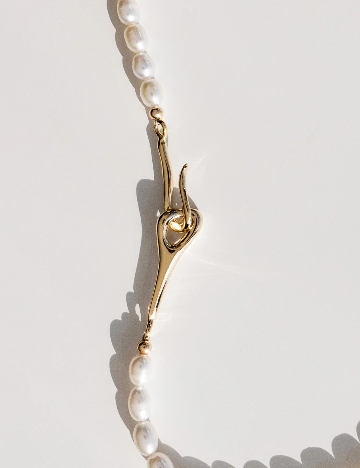 The Lyvia Necklace is a timeless pearl piece with a contemporary charisma. It features Cadette’s signature hook closure that was diligently hand-carved to be an alluring accent that can be worn at the front, side or back. The unique clasp sits amongst freshwater pearls that exude a stunning luster. A piece that embodies the perfect balance of statement and simplicity.