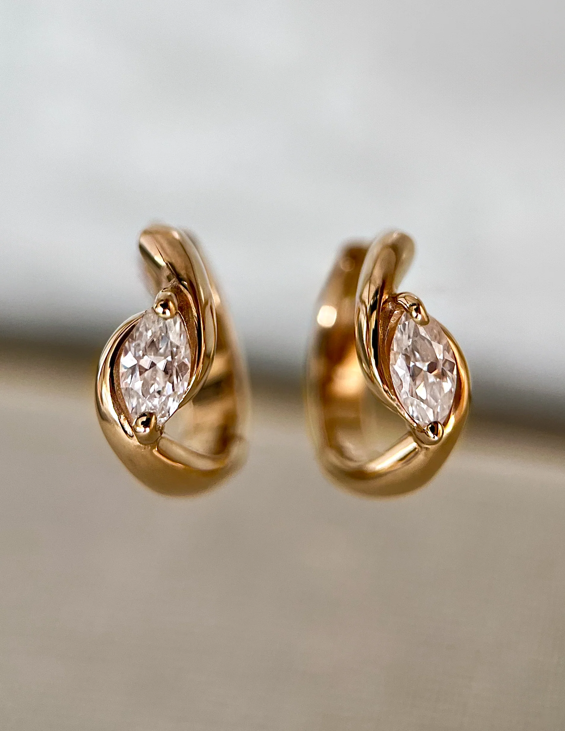 Your everyday essential hoops, with an artful yet timeless spin. They feature petite marquise cut diamonds within our signatureĀ 'Raptureā¢'Ā design, emulating the flow of the oceanās waves. Elegant and effortless, they were made to feel like a natural part of you, never to be taken off. Wear them daily as a reminder of your intrinsic connection with Mother Nature and all of her majestic forms.