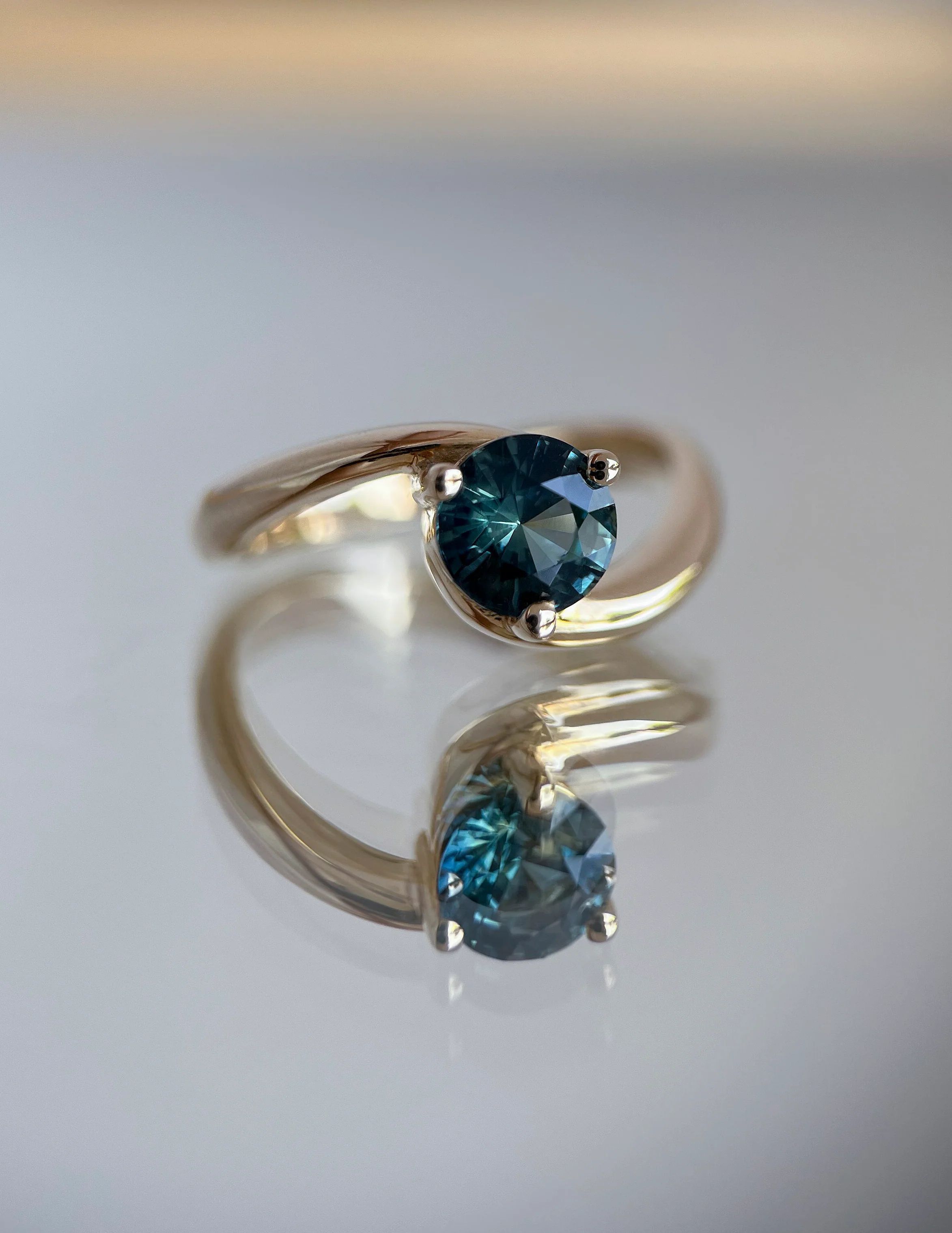 One-of-a-kind — 1.27CT Australian Teal Sapphire Round Rapture Ring