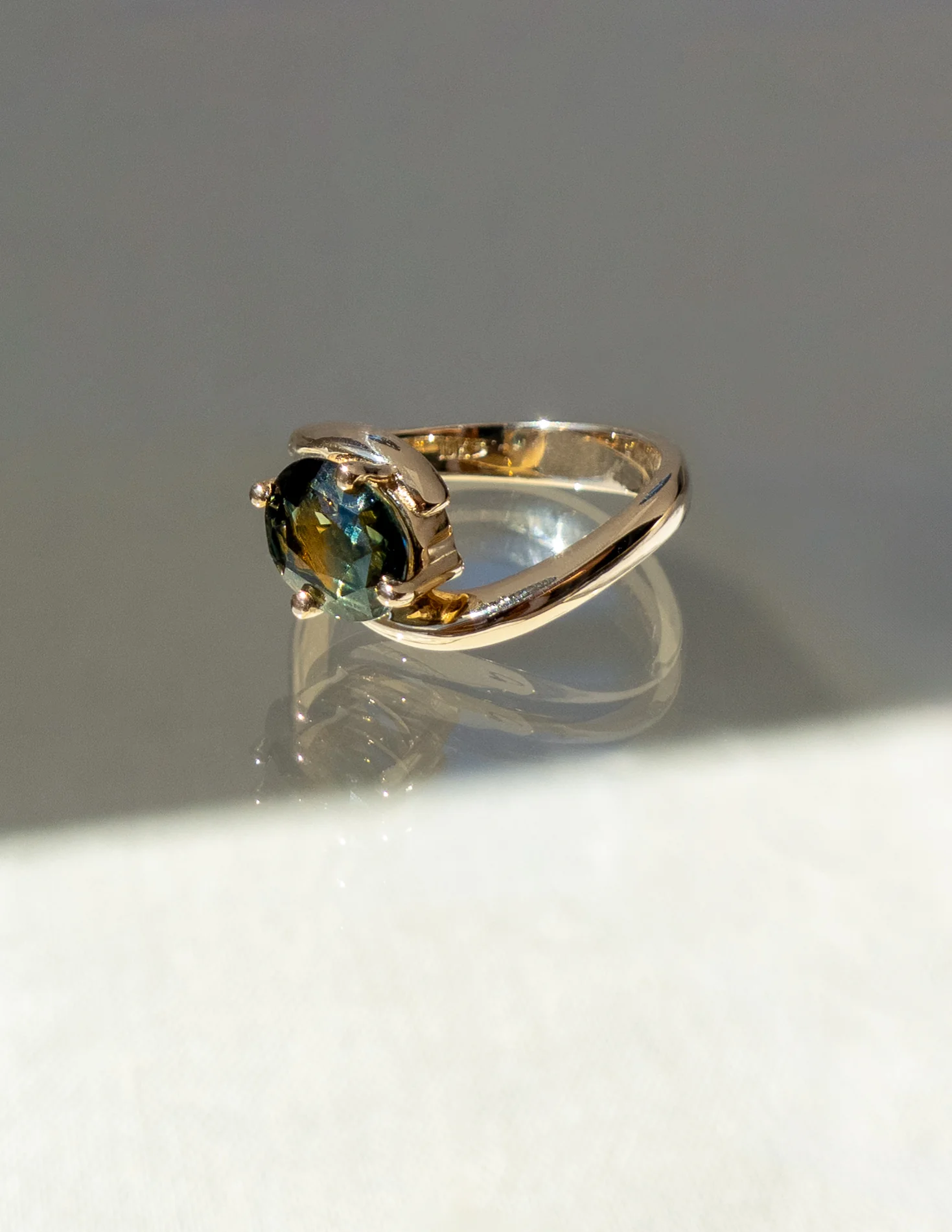 One-of-a-kind — 2.3CT Australian Parti Green Sapphire Oval Rapture Ring