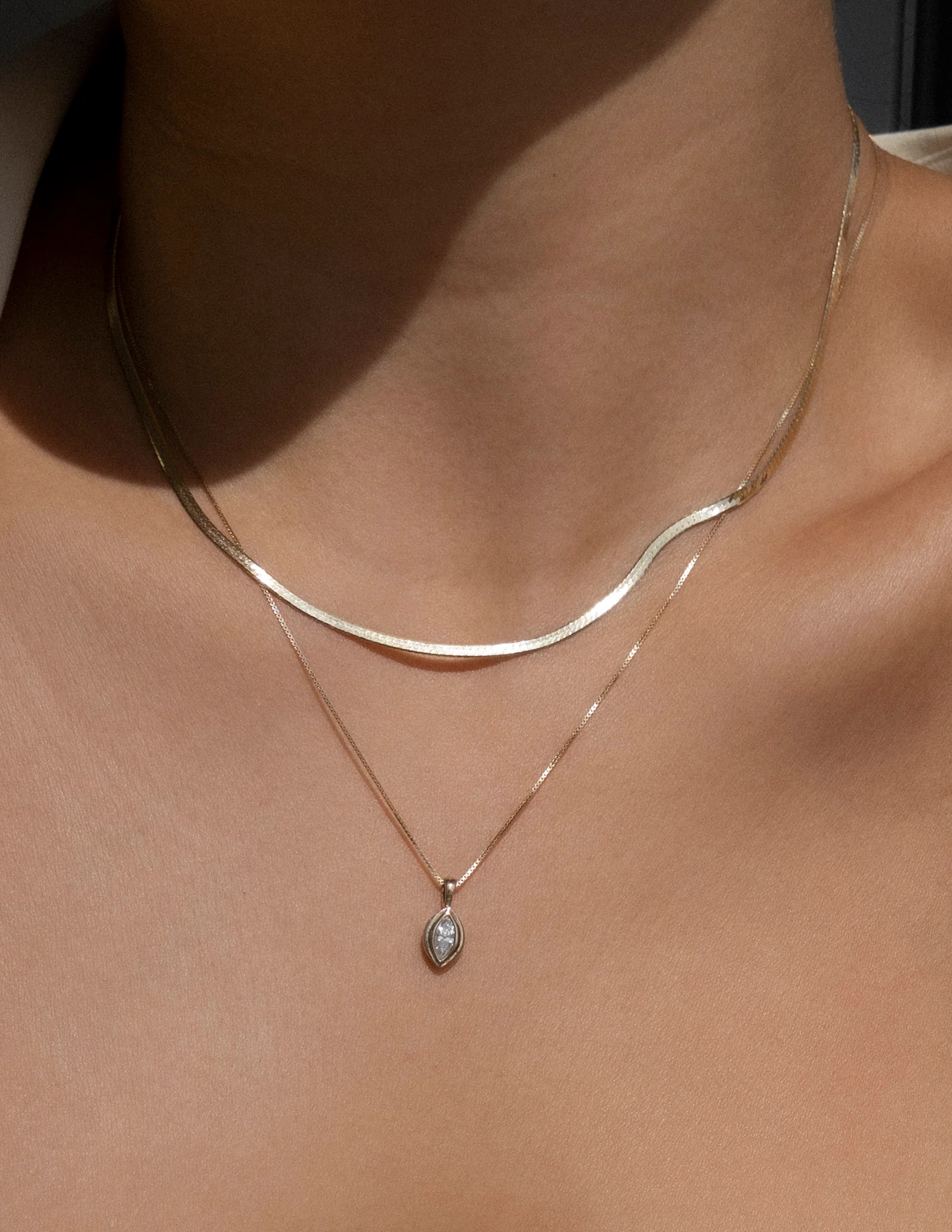A true classic, the Petit Solis Necklace in 14k solid gold is a lifetime piece — and the slightly more petite (width-wise) version of the Solis Necklace. The herringbone style has the perfect balance of simplicity and substance. Given the name Solis, meaning 'sun' in latin, this piece catches and reflects sunlight ever so stunningly. Wear it on its own or layered with your other favourites – either way, the Solis Necklace is sure to be a striking statement piece.