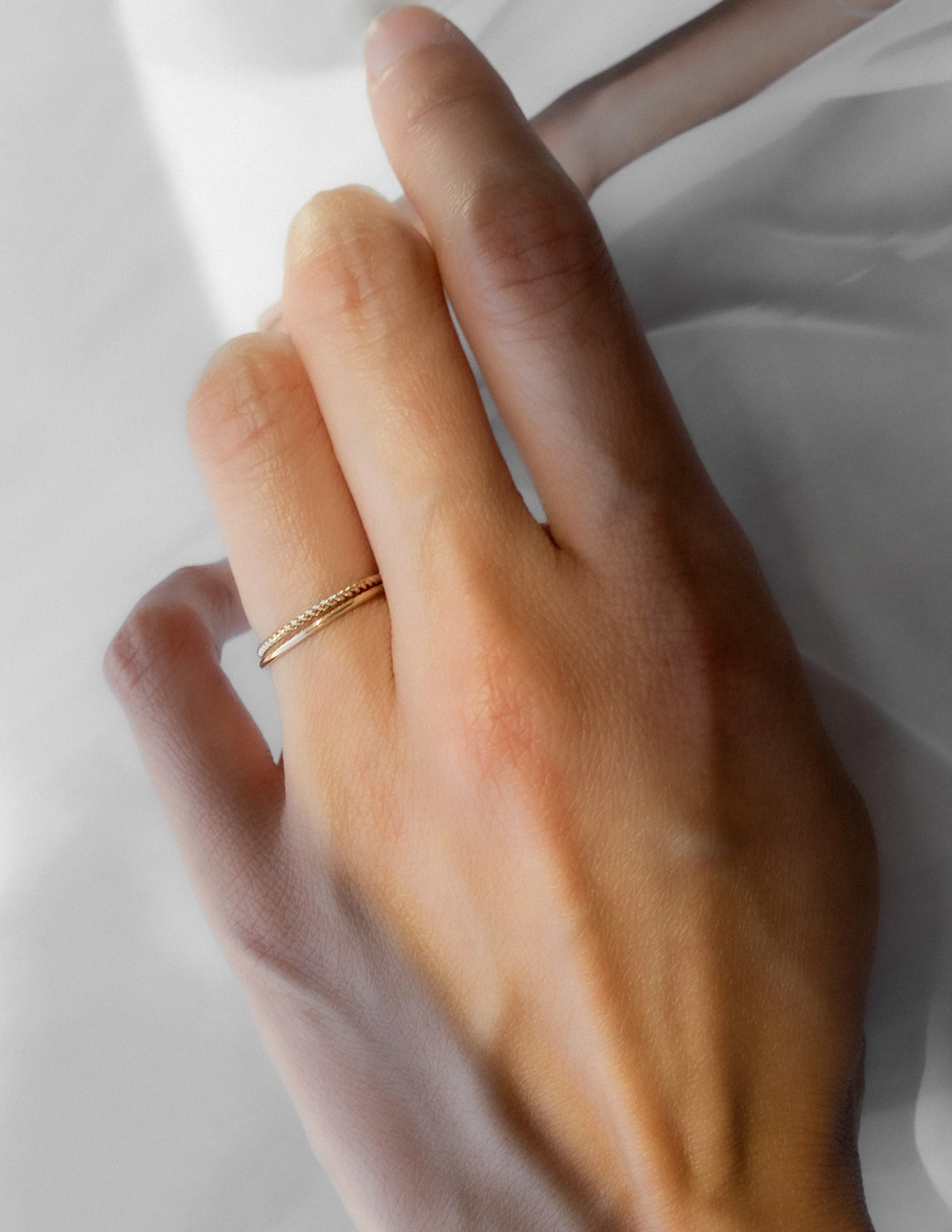 Your essential minimal stacker ring in aĀ rope design. Effortless and lightweight, this ring was made for everyday, care-free wear. Wear it alone or layer with your other favourites. It pairs perfectly with the SleekĀ Stacker Ring, creating a beautiful contrast.Ā