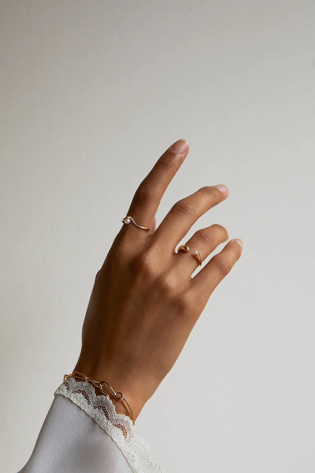 The Wabi Pearl RingĀ in solid gold or sterling silver features a fluid shape that tucks a pearl within it. Minimal and organic in design, it's meant to feel like a natural extension of you. Wear it on its own or stacked with your other favourites. The ring's name includes 'wabi', inspired byĀ wabi sabi: a traditional Japanese aesthetic and point-of-view that values beauty in imperfection. In the case of this ring, it is the irregularity of its shape that makes it truly unique and beautiful.